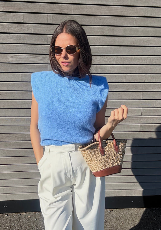 VIOLETTE - PULL SANS MANCHE ÉPAULETTE BLEU
