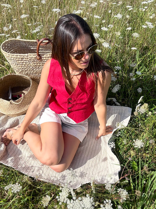ALBA ROUGE - GILET SANS MANCHE LIN